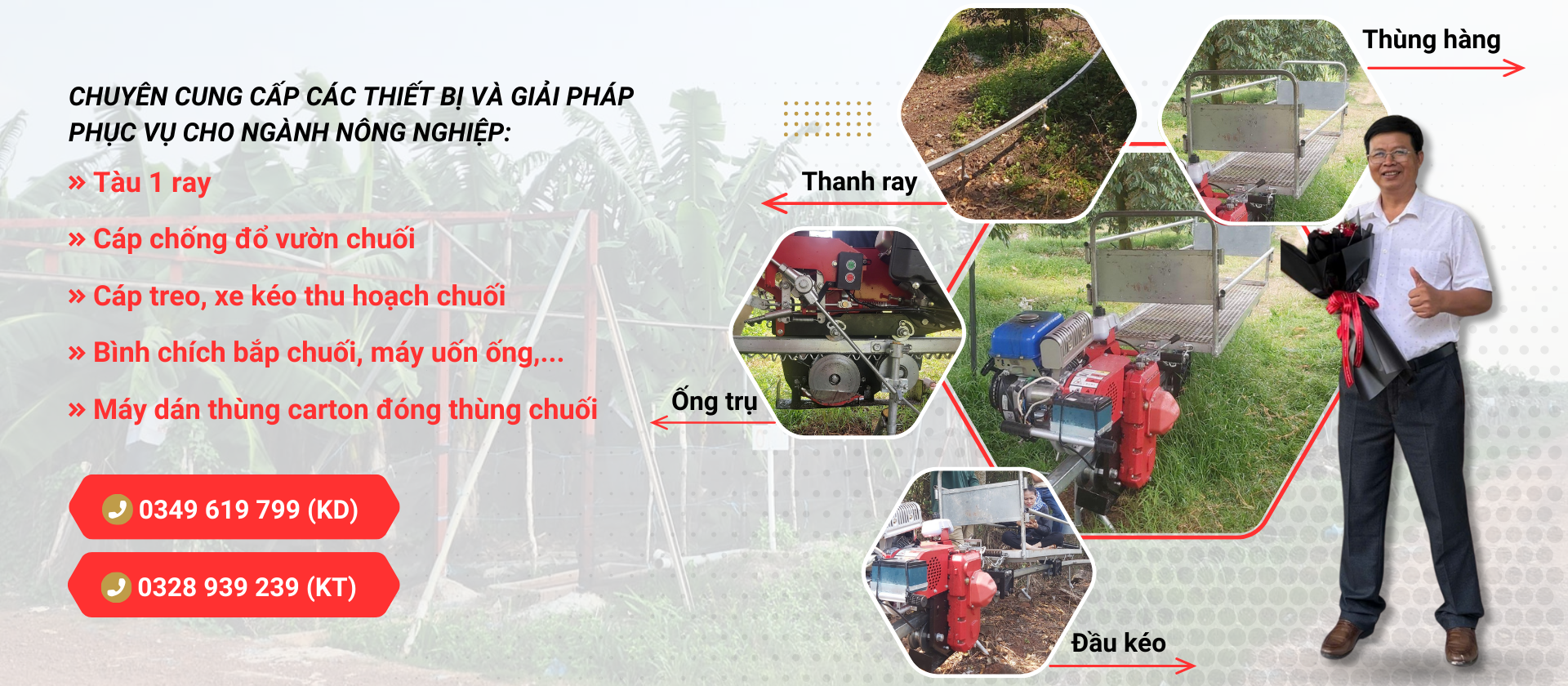 CÔNG TY TNHH SX TM VÀ DV HỒNG KỲ là một doanh nghiệp chuyên cung cấp các thiết bị và giải pháp phục vụ cho ngành nông nghiệp, đặc biệt trong việc trồng và thu hoạch chuối. Sáng tạo không ngừng, Nhà nông hái lộc: thể hiện rõ nét kim chỉ nam cho mọi hoạt động của Công ty TNHH SX TM và DV Hồng Kỳ, hướng đến mục tiêu mang đến sự thịnh vượng cho người nông dân Việt Nam bằng sức mạnh của công nghệ Với đội ngũ nhân viên chuyên nghiệp và kinh nghiệm dày dạn, HỒNG KỲ cam kết mang đến cho khách hàng những sản phẩm chất lượng và dịch vụ tốt nhất, góp phần nâng cao hiệu quả sản xuất nông nghiệp. Công ty luôn sẵn sàng lắng nghe và đáp ứng nhu cầu của khách hàng, tạo dựng mối quan hệ bền vững trong ngành nông nghiệp.